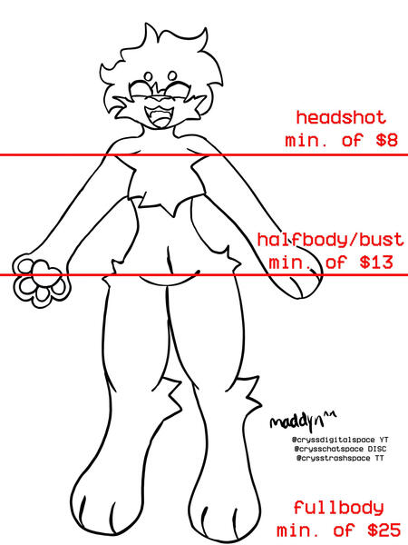 [ all in USD, prices are flexible and ultimately depend on what i decide, but the comm. will most likely correspond with the pricing below ! ]LISTING PRICES